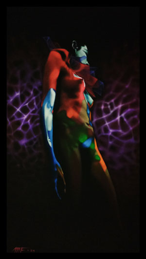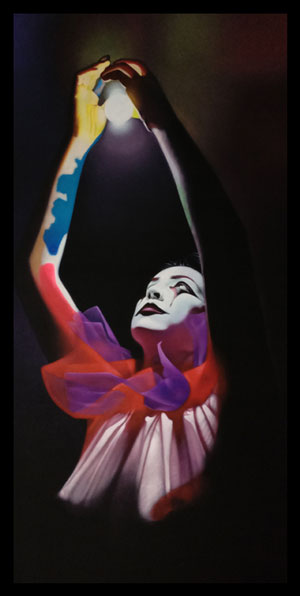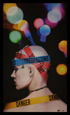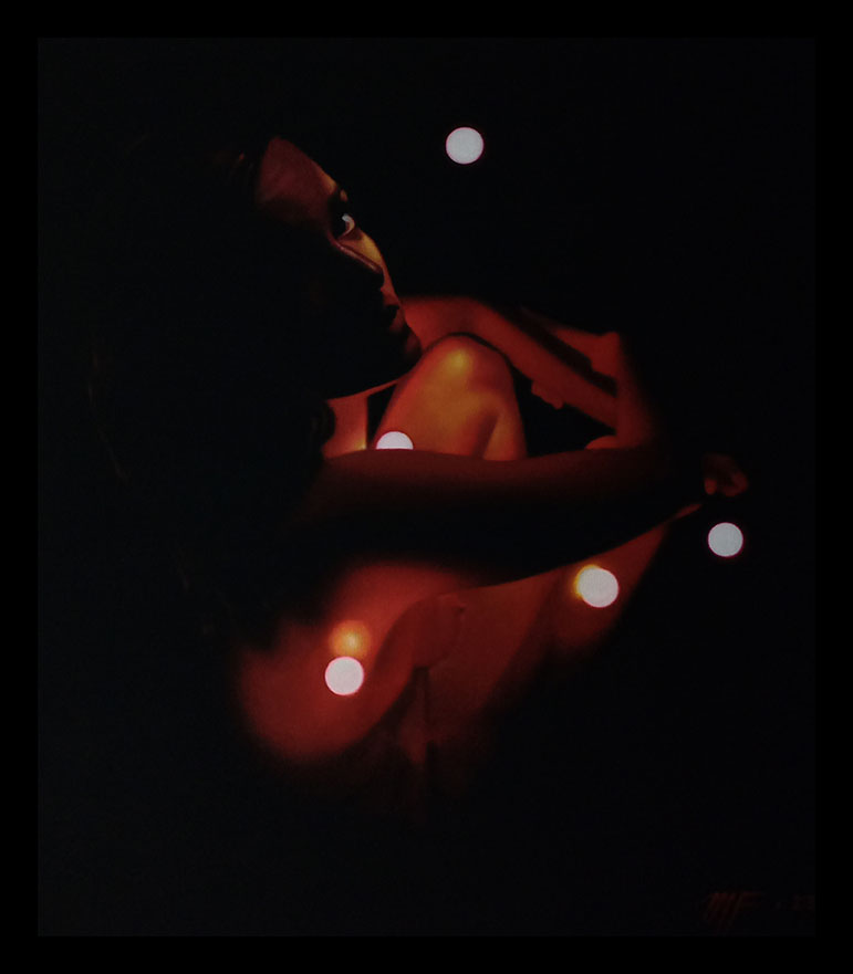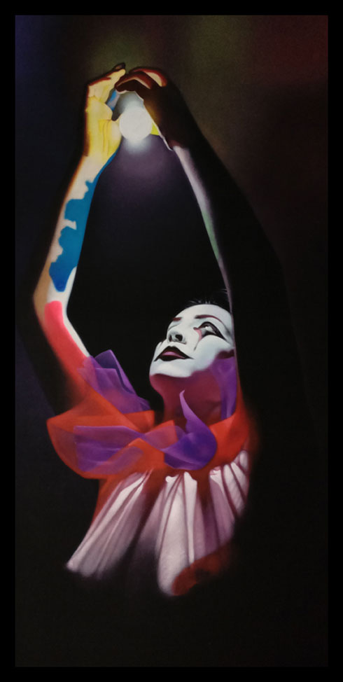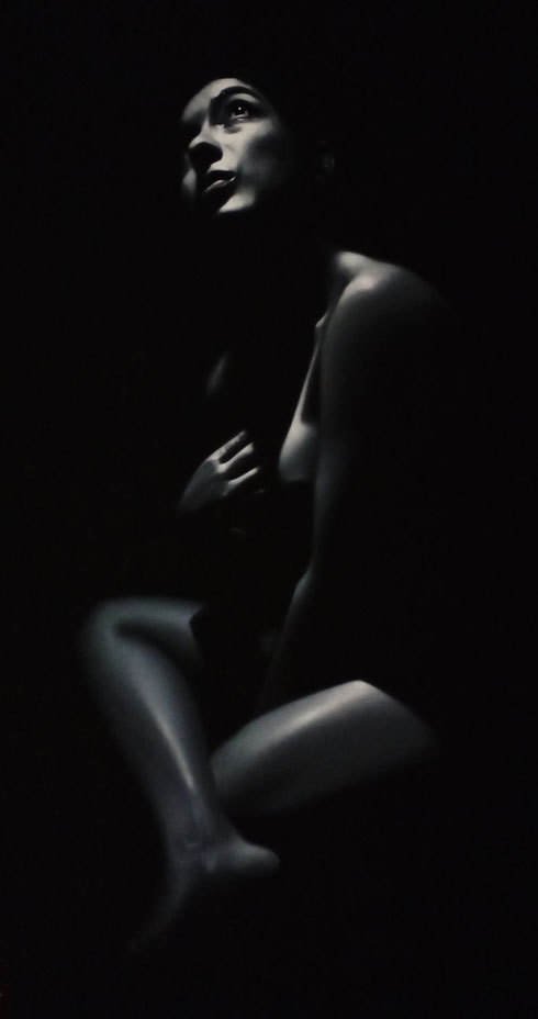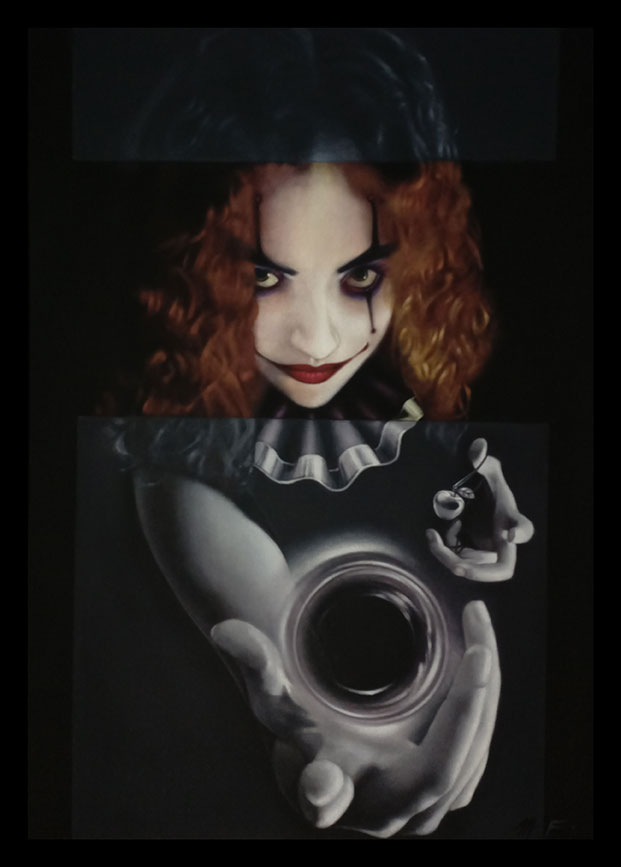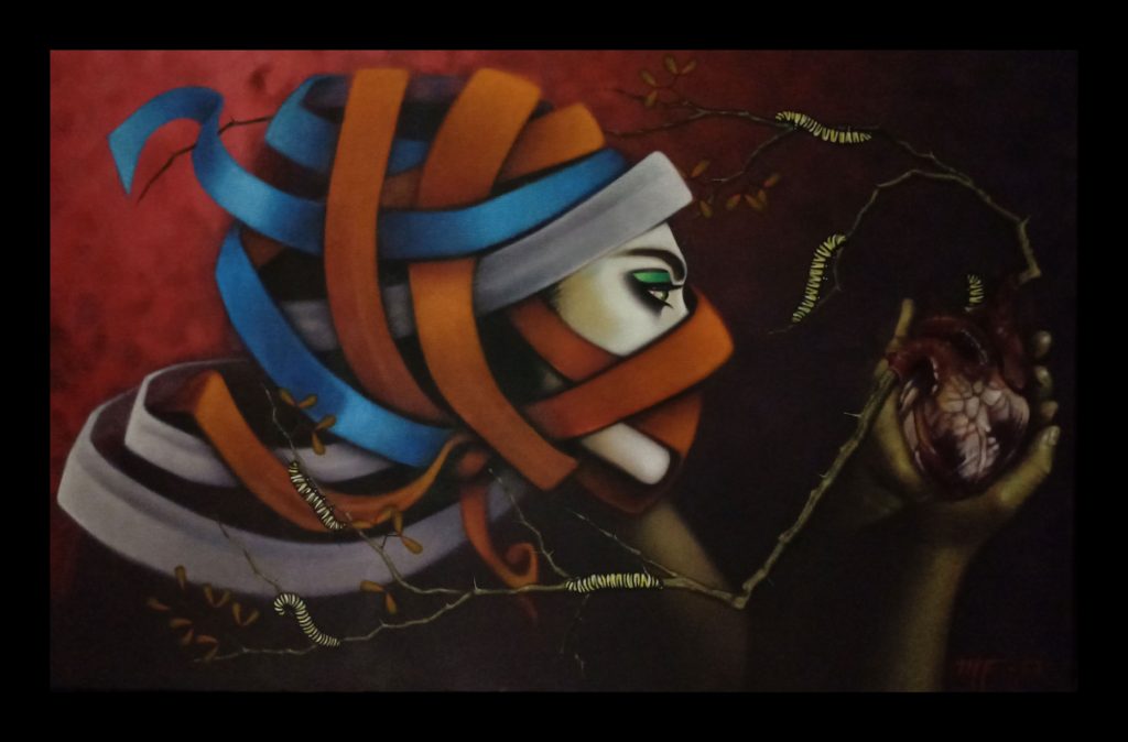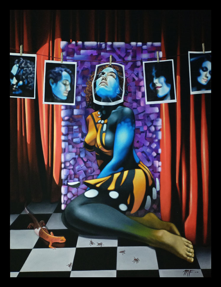 La obra es el resultado del acercamiento y análisis de la parte humana más débil, sus expresiones, sus deseos y despersonalización dentro de un escenario de colores vivos en contraste con la obscuridad de los más íntimos temores interpersonales y lo seductible de sus anhelos. Expresada con un singular matiz en el acrílico de veladuras secas de parámetros conservadores, imprimen también una sutil reinterpretación de la realidad.
